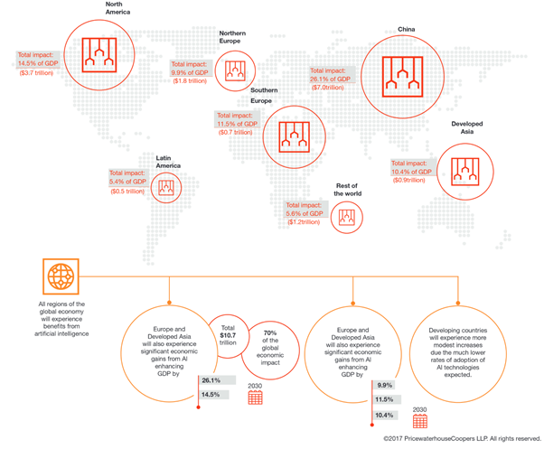 | Economic Impact | $15.7 trillion by 2030 (PwC), with 26% GDP boost for China, 14.5% for North America |