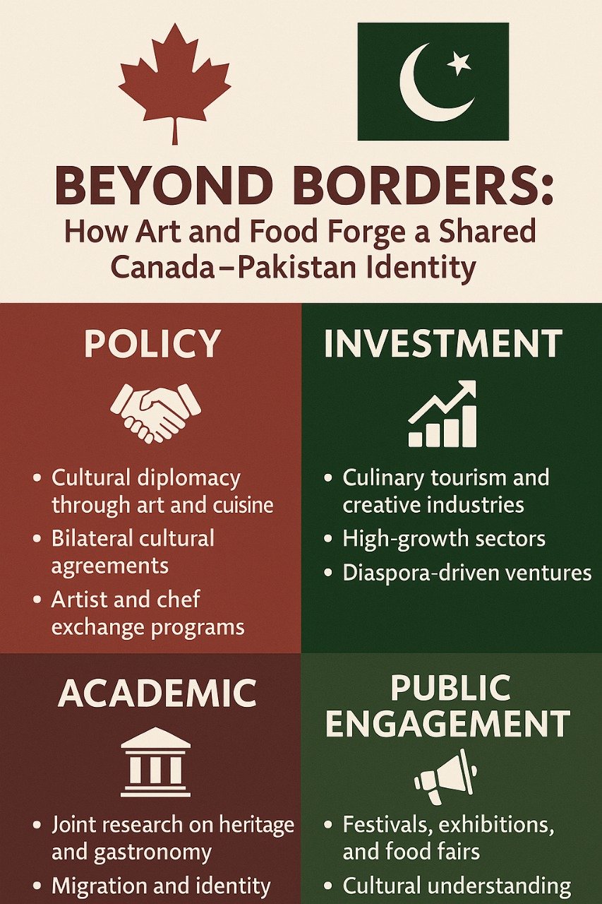 Art and cuisine are not just cultural expressions — they are economic, diplomatic, and academic bridges. Canada–Pakistan exchanges in these realms can deepen bilateral ties, attract investment, and foster inclusive, sustainable growth for both nations.  Key Points